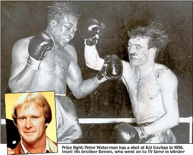 Boxing News 10121952 page 4. His brother Dennis Waterman became an actor and singer. Boxers feet pan up to boxers Waterman going after Johnson.