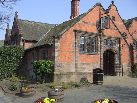Located in the Lyceum building which was built in 1895 and originally housed the Village church and school. Lyceum Club Port Sunlight Port Sunlight. Spring view in Port Sunlights Dell with the late 19th century Lyceum.