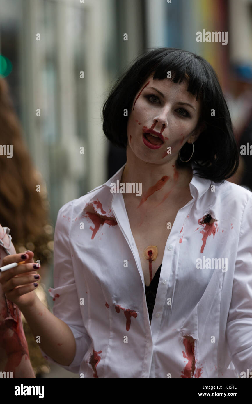 Participant In Full Makeup And Costume At The Annual Bristol Zombie Walk 29th October 2016 Bristol England Stock Photo Alamy